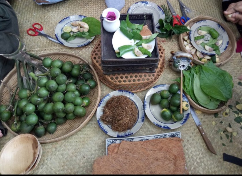 Từ đó Vua Hùng ra lệnh trồng ra cho nhiều trước là chữa được nhiều thứ bệnh, sau là nêu gương cho hậu thế, anh em thương yêu như thể tay chân. Cũng như nói lên tình yêu chung thủy. Từ đó Bách Việt Văn Lang đi vào cúng kiến nghi lễ phải có Trầu, Cau, Vôi. Nhất là tục lệ kết duyên cưới hỏi. Phải có đủ ba món Trầu, Cau, và Vôi. Nói lên tình yêu thủy chung gắng bó sống chết có nhau. Về sau có người trong lễ cưới hỏi chỉ dùng có Trầu, Cau không có Vôi. Vì người ta cho rằng bạc như Vôi. Làm cho mối tình Tân và Duyên đầy cảm động và cũng đầy nước mắt. Câu chuyện sự tích Trầu, Cau, đến đây là hết. Câu Chuyện Sự Tích Trầu Cau đến đây là hết. Long Hoa Lược Truyện, Văn Hóa Cội Nguồn